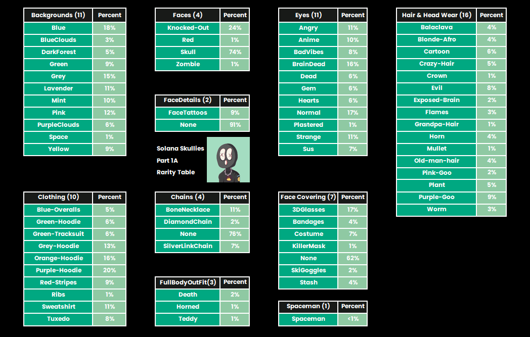 With bold personalities, vibrant colors and glowing backgrounds, plus trillions of combinations! every Skullie is a 1 of 1